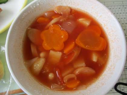 ミネストローネに入っているにんじんがお花やハートの形になっていて、楽しく美味しく食べることができました。