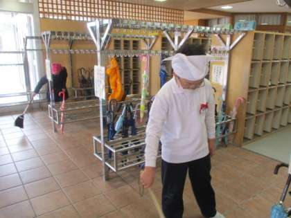 6年生が中心になって清掃を進めています。下級生のよい手本となっています。