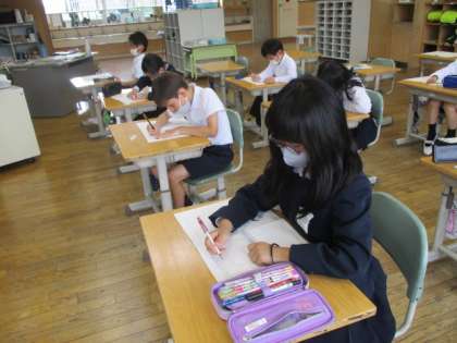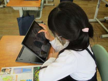 4年生は、chromebookを使って「まぼろしの花」の絵に挑戦しています。