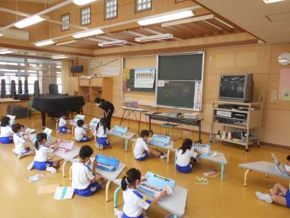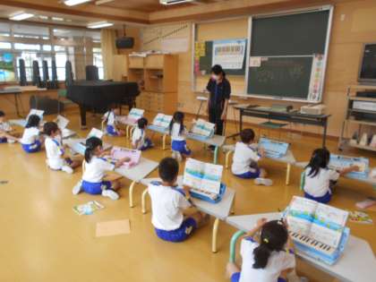 けんばんハーモニカの授業が始まりました。決められた指順でかえるの歌を上手に演奏できました。机の準備や片付けも協力して進められました。どんどんいろんな曲が弾けるようになれるといいね!