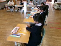 けんばんハーモニカの授業が始まりました。決められた指順でかえるの歌を上手に演奏できました。机の準備や片付けも協力して進められました。どんどんいろんな曲が弾けるようになれるといいね!
