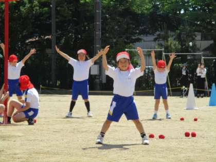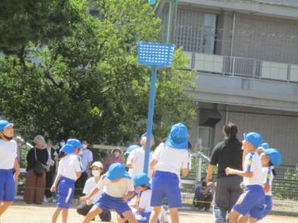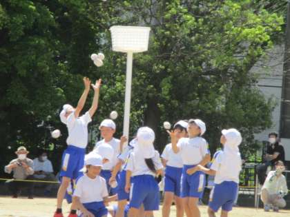 下学年の団体競技は、「ダンスで玉入れ」です。ダンスがとてもかわいらしかったです。