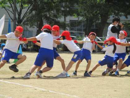 上学年の団体競技は「綱引き」です。力が入りました。