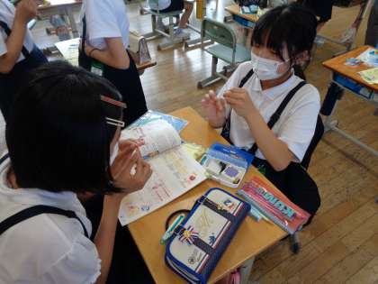 今日は裁縫セットを使って、玉結びや玉どめ、なみ縫いの練習を行いました。友達の手元を見たり、アドバイスをし合ったりしながら上達を目指しました。