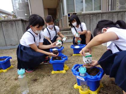 6月16日(木) 3年 ホウセンカの植え替え