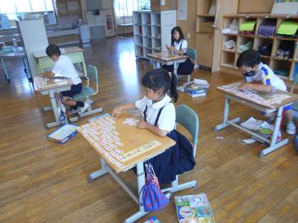 10までのたしざん、ひきざんをカードを使って練習しています。何回も繰り返し練習しています。