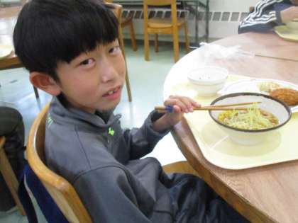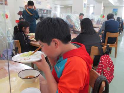 森小屋、遊び場づくりでたくさん動いた後は、昼食です。おいしい食事を楽しみました。