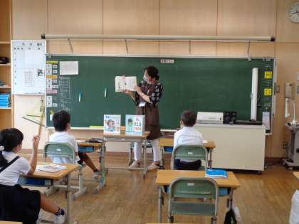 国語の時間に学習している物語と似た、不思議なお話や季節に合わせた読み物を紹介していただき、興味津々の子供たちでした。