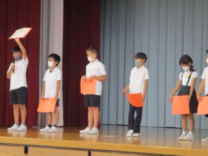 第2、第4金曜の朝活動は「岩瀬タイム」です。今回の集会では、○×クイズをして楽しみました。