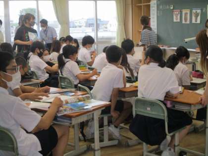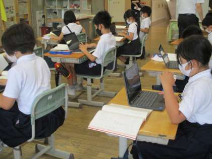4年生、5年生は、chromebookを使った学習です。6年生は社会科で土器の学習をしていました。