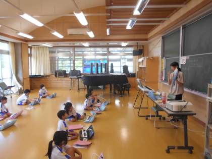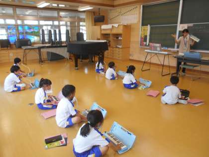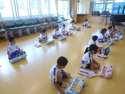 今週から音楽の学習で、鍵盤ハーモニカを使い始めました。使い方を教わり実際に音を出してみました。