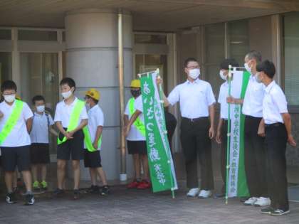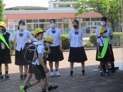 岩瀬小学校を卒業した中学生が、朝の挨拶運動に来てくれました。挨拶された子供たちは、少し恥ずかしそうに挨拶を返していました。これからも元気な挨拶の輪を広げていきましょう。