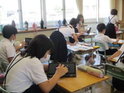 4年生は算数の学習です。5年生は図画工作の学習です。6年生は理科の学習です。みんな落ち着いて学習に取り組んでいます。