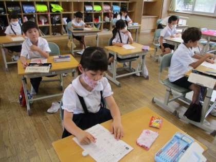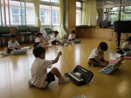 1年生は音楽で鍵盤ハーモニカの音を楽しみました。