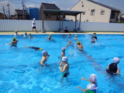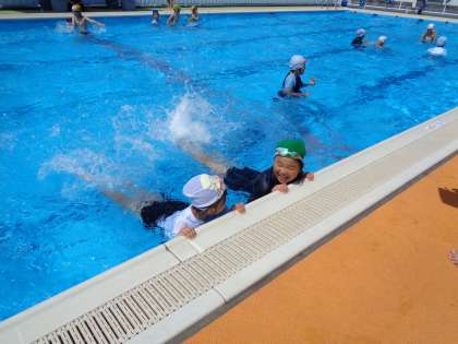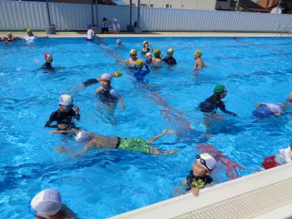 今年度、初めての水泳学習をしました。久しぶりの大きなプールにどきどきわくわくの子供たち。
