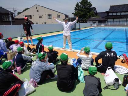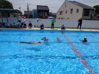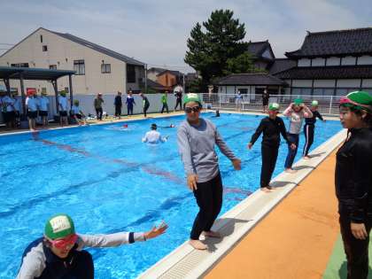 今日は赤十字水上安全指導員の方々に、水場での危険から命を守るための講習をしていただきました。水中に落下した際は、「浮いて待つ」ことが大切であると教えていただくなど、自分や周りの人達の命を守るためのすべを学んだ子供たちでした。