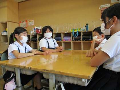 各学級では、夏休みの作品を見合ったり、友達と夏休みの思い出を話し合ったりしました。