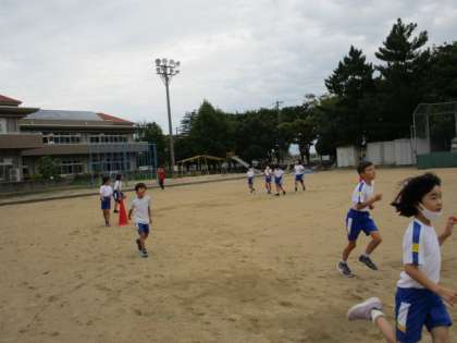 今日の朝活動はチャレンジタイムです。全校児童が体力つくり活動に取り組みました。