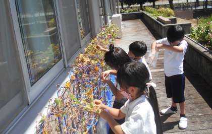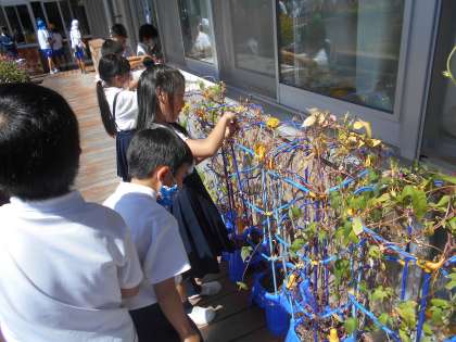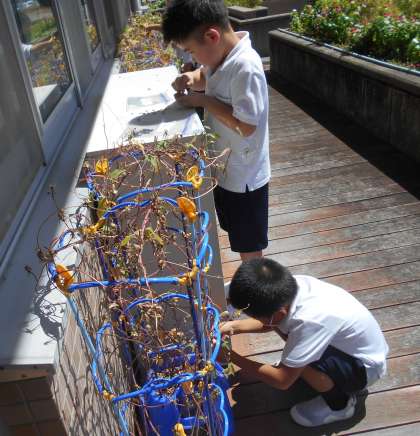 1学期から育てているアサガオにたくさんの種をつけました。朝や休み時間、帰りの会の前の時間を使って種取りをしています