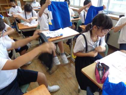 明日のチャレンジ陸上に向けて、体操服の準備をしました。楽しみですね。