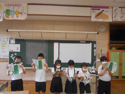 音読発表会をしました。2つのグループに分かれて「おむすび ころりん」のお話を読みました。グループそれぞれに、工夫が見られました。