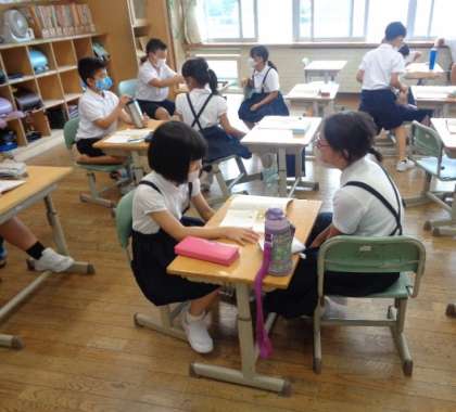 国語の学習で「あなたなら、どう言う」という対話の練習をしました。お姉さんと弟の二人の立場になって、納得させるためにどう言えばよいかを考えて友達と話しました。