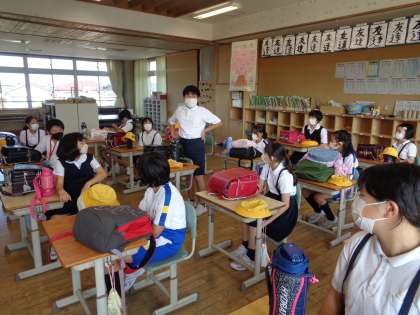 5年生の帰りの会では、その日に見つけた「誰かのために行動した」人や「精一杯がんばった」人を“キラリさん”と呼んで紹介する活動を行っています。これからも友達のすてきなところを見つけ、それを学級全体で認め合っていきたいと思います。