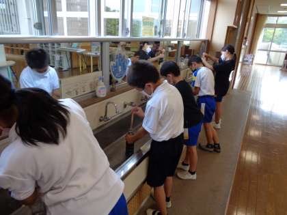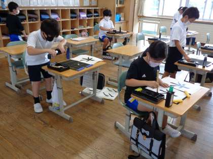 書き終わると静かに洗面所へ行き、周りを汚さないように筆を洗い、汚れているところをスポンジで磨いている子供たちが多くいました。