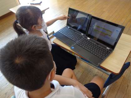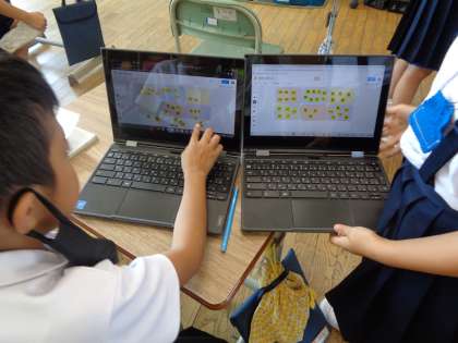 国語科『ことばのなかま分け』では、与えられた言葉をグループに分類する学習をしました。クロムブックをさくさくと操作し、何のヒントもなく、全員グループ分けすることができました。