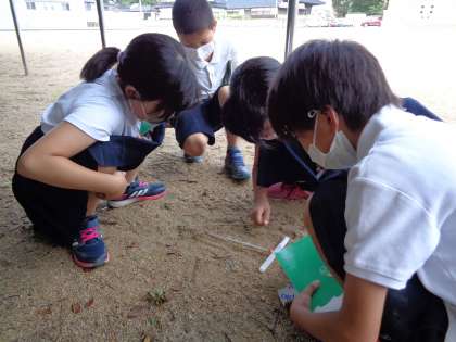 「ここが日かげだね」「日なたはまだ温度が上がっていくよ」と、見た目ではあまり分からない違いを感じていました。