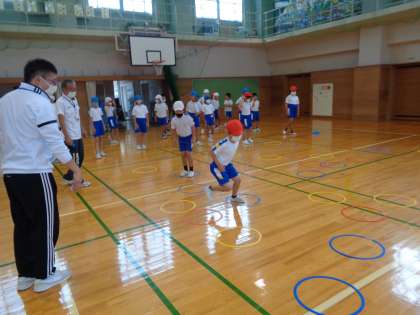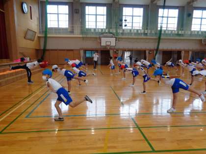 市のスポーツ指導員の方に来ていただき、体つくり運動について教わりました。
