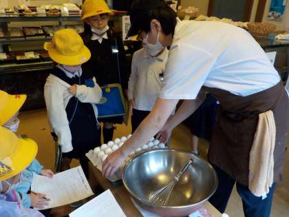 生活科では、町探検の授業が進んでいます。今回はクラスで2グループに分かれて、岩瀬にあるお店屋さんにインタビューをしに行きました。大塚屋へインタビューをしに行ったグループは、どら焼きの作り方を詳しく聞かせていただき、子供たちはとても喜んでいました。