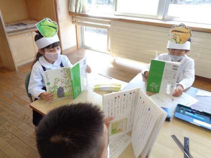 国語科の『お手紙』の授業では、音読劇に向けて学習が進んでいます。今日は、がまくんとかえるくんが言い合いになる場面を考えました。だんだんとがまくんやかえるくんの様子を想像しながら、なりきって音読ができるようになってきていて、音読劇が楽しみです。