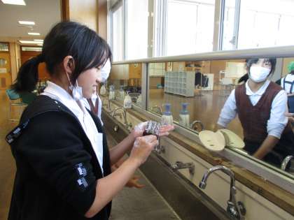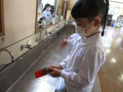 ようやく涼しくなりました。遅くなりましたが、洗面所にアイス石けんがお目見えです。子供たちは興味津々で、石けんをのぞきこんでいました。給食前の手洗いは、香りを楽しみながら念入りに洗っていました。手洗いが、楽しくなりそうです。