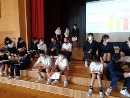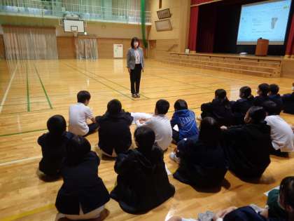 体育館での発表練習を始めました。聞いている人が伝わるように、あと1週間がんばって練習を積み重ねます。