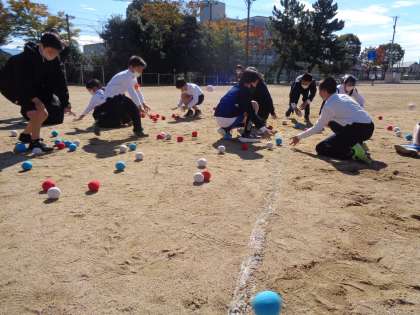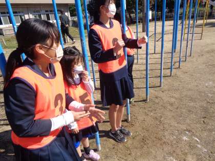国語科の学習で話し合ったことを生かして、色団ごとに1年生と大休憩に交流をしました。赤団はしっぽ取り、白団は玉入れ、青団は氷鬼をしました。1年生と体を動かせたことが楽しかったようです。1年生も楽しそうに参加してくれました。