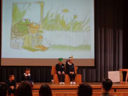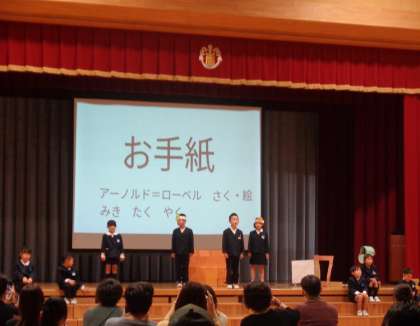 学習成果発表会がありました。2年生は国語科『お手紙』の音読劇の発表をしました。子供たちから緊張が伝わってきて、一生懸命に練習した成果を発揮しようという気持ちが現れていました。大きな声と大きな動きで、自信をもって発表できていました。