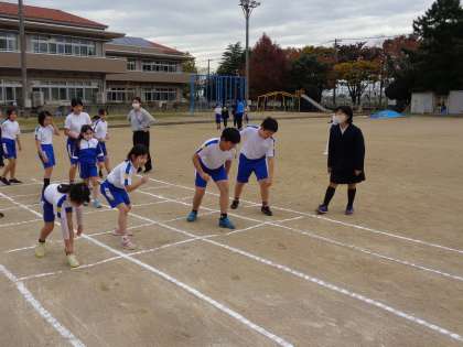 5年生の子供たちは、先週までは朝の時間に学習成果発表会の合唱練習を行っていたため、今日が久しぶりのチャレンジタイムでした。2年生との50m走を楽しんでいました。