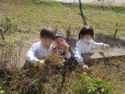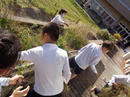 今日のお昼休み(のびのびタイム)に花壇の草むしりをしていると、外で遊んでいた子供たちが一緒に手伝ってくれました。お手伝いが大好きな2年生です。