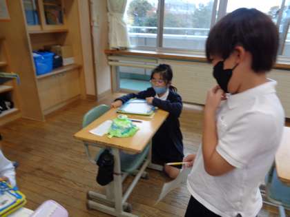 「これはどうしてここに付けたの?」「この飾りかわいいね!」と友達と話をしながら、友達の工夫を見付けていました。