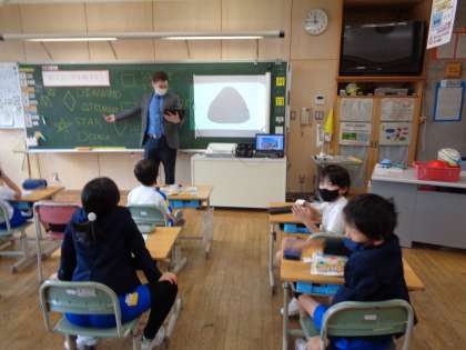 身の回りにある様々な形の英語での言い方を教わり、進んで使っていました。