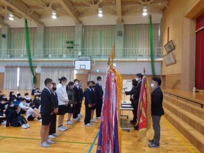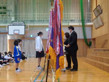 9月に行われたチャレンジ陸上と野球の賞状を受け取る様子です。たくさんの6年生が活躍していますね。