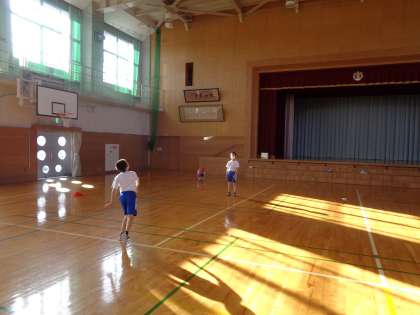 今日は一人一人順番に飛ばしていきました。遠くまで飛んでいってしまう子、くるりと回転している子、ぽとりと墜落してしまう子・・・といろいろでしたが、とても楽しく飛ばしている子供たちでした。