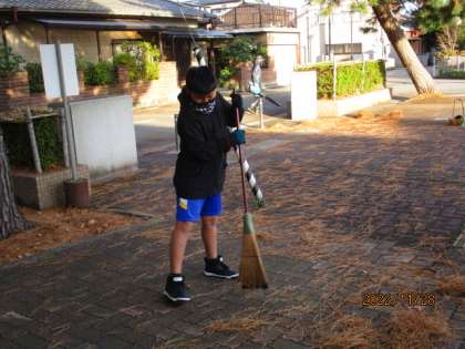 寒くなり、校庭の樹木の葉が落ちてきています。朝、たくさん落ちている松葉を見て、6年生の児童が自主的に清掃してくれました。進んで働くその姿がとてもうれしく、頼もしく感じました。