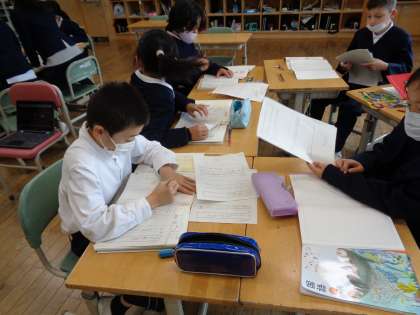 国語科の時間に、調べたことわざや故事成語をまとめて、グループでことわざ辞典を作りました。