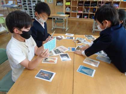 図画工作の時間には、アートカードを使って4コマ物語を作りました。