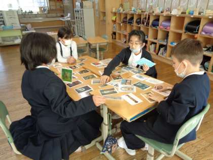 いろいろな作品が描かれたカードを選んで、物語を考えます。