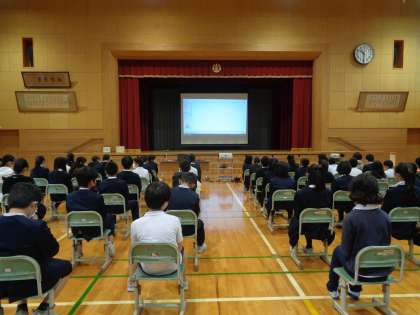 今日は交通安全教室がありました。自転車に乗ることが多い6年生にとっては、身が引き締まるお話でした。「ぶたはしゃべるら」を合言葉に、自転車の点検を行いましょう。