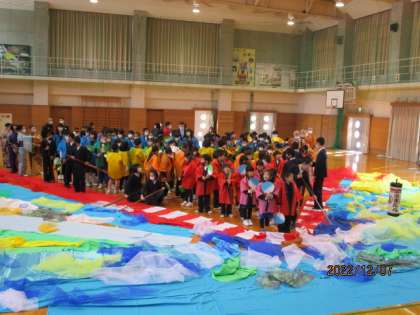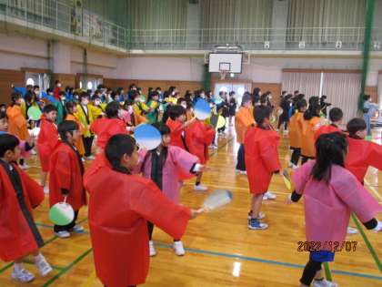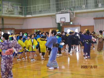 毎年、創校記念式典で披露している「岩瀬まだら」の踊りを教えていただきました。「楽しかった」と話す子供が多く、式典当日の踊りも楽しみになりました。みんなで岩瀬小学校の150周年をお祝いしましょう。