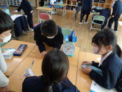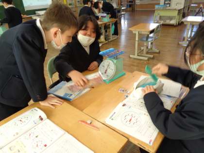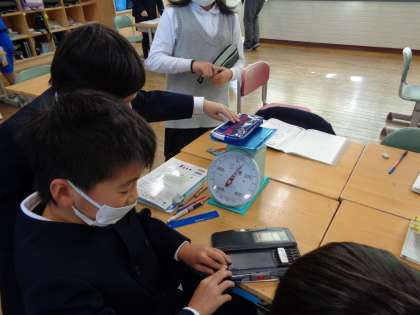 算数の学習では、はかりを使って身の回りの物の重さを量りました。